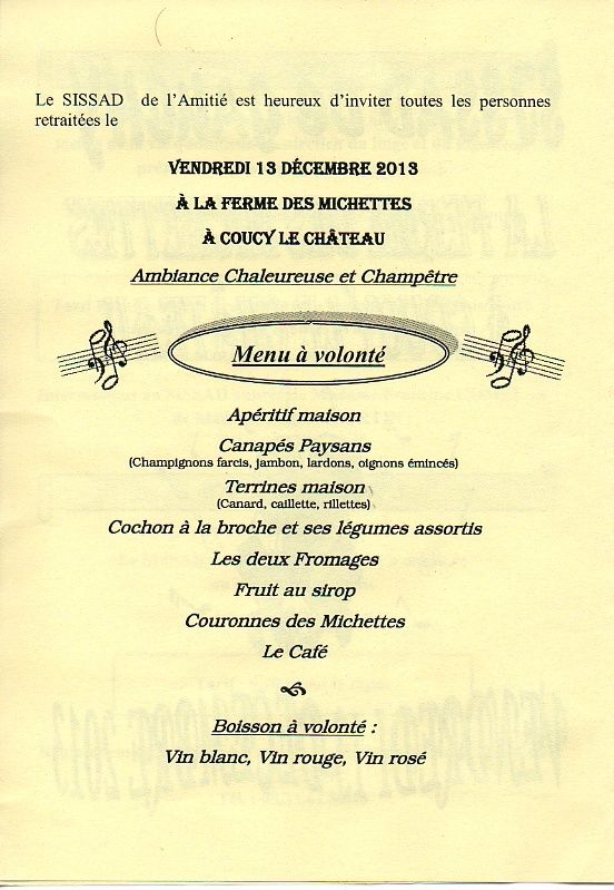 Le SISSAD de Gauchy organise une sortie à la ferme des Michettes le vendredi 13 décembre.