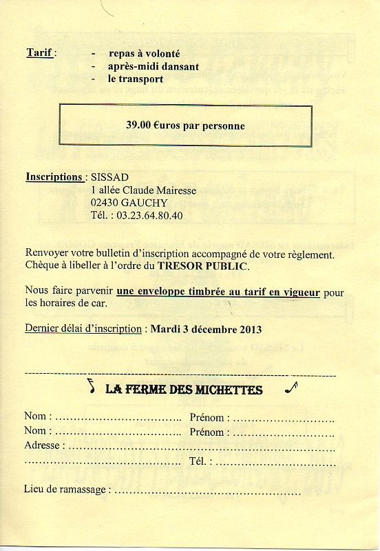 La participation demandée est de 39 € comprenant le transport, le repas à volonté et l'après-midi dansant.