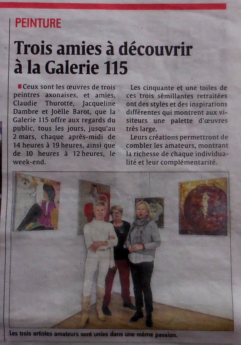Jacqueline Dambre, Joëlle Barot et Claudie Thurotte, les 3 amies, exposent au 115, la galerie d'art de la rue d'Isle.
